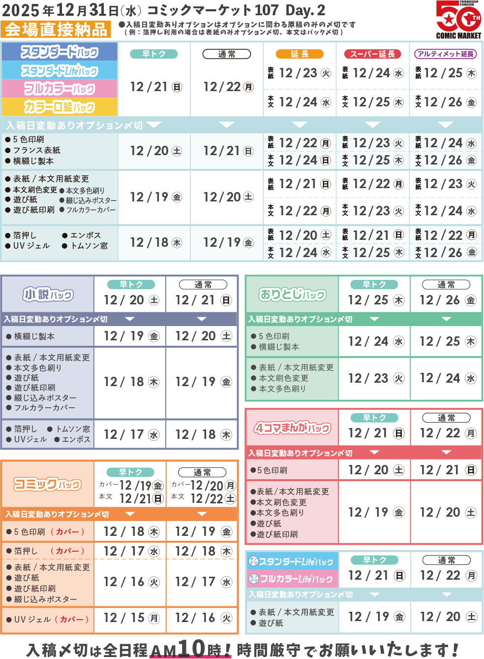 ● 入稿締切は 全日程当日AM10時です!時間厳守でお願いいたします。